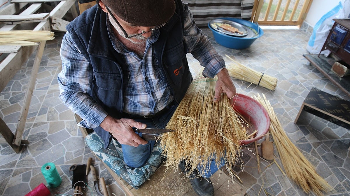 Mesleğin ölmediğini ancak talebin çok azaldığını belirten Fırat, “Gelir kaynağımız bu. Köyümüzde haftalık 1000 süpürge üretiliyor.” dedi.