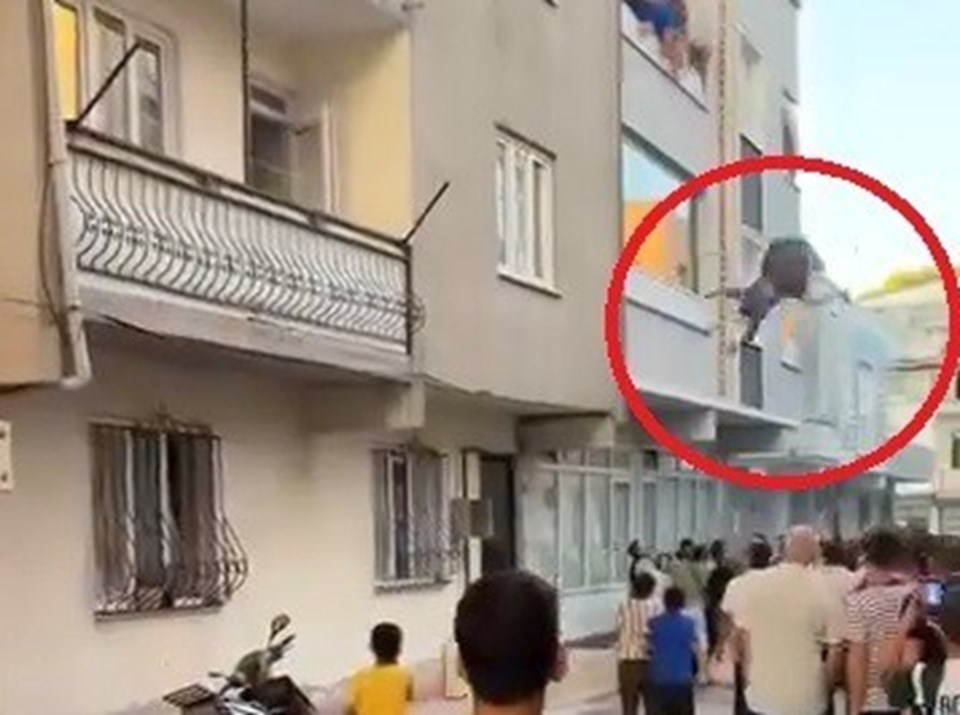 Yangını fark eden çevredekiler durumu ekiplere bildirirken, anneanne büyük bir panik içerisinde torununu pencereden aşağıda bekleyen vatandaşların üzerine bıraktı.
